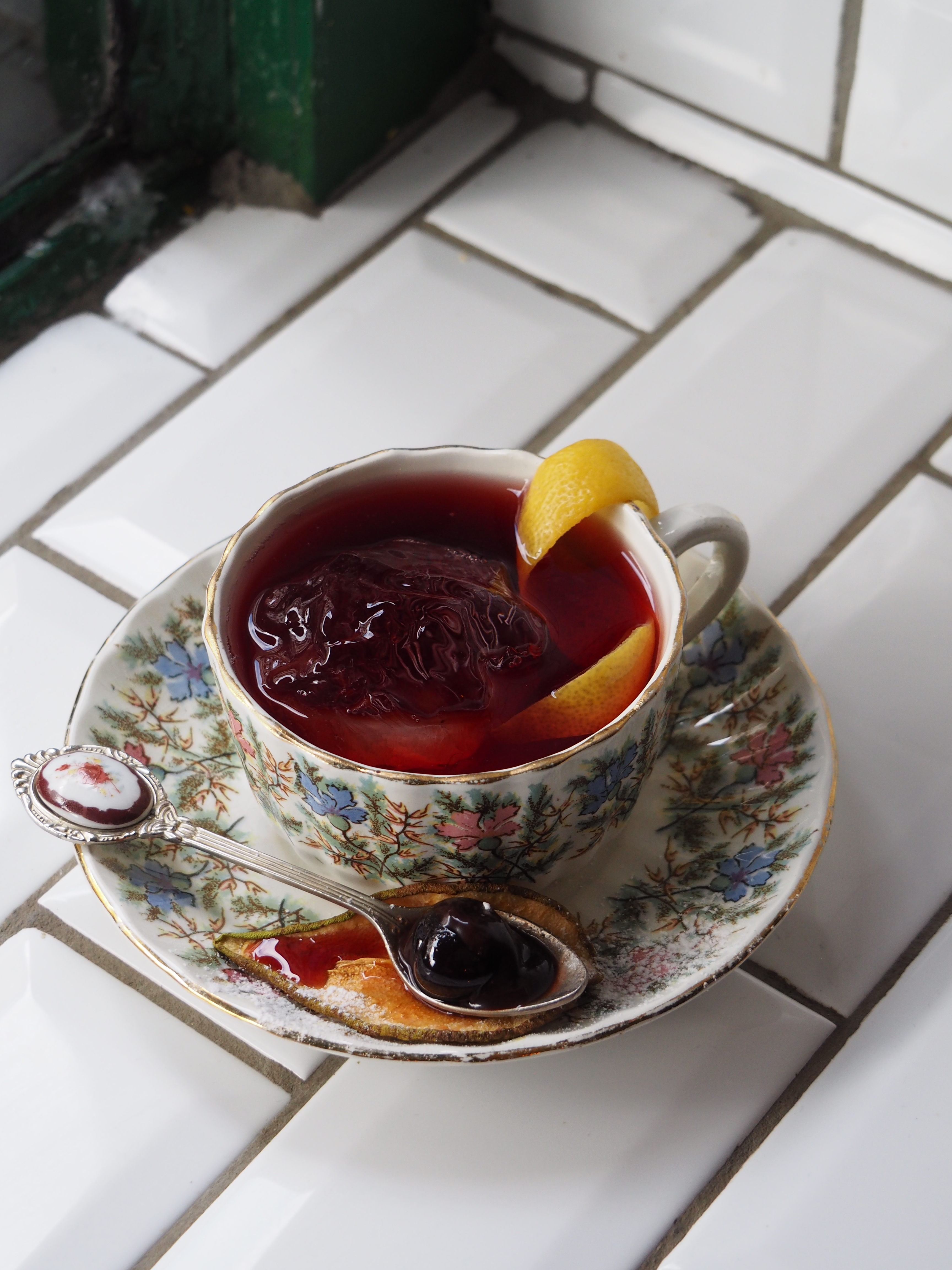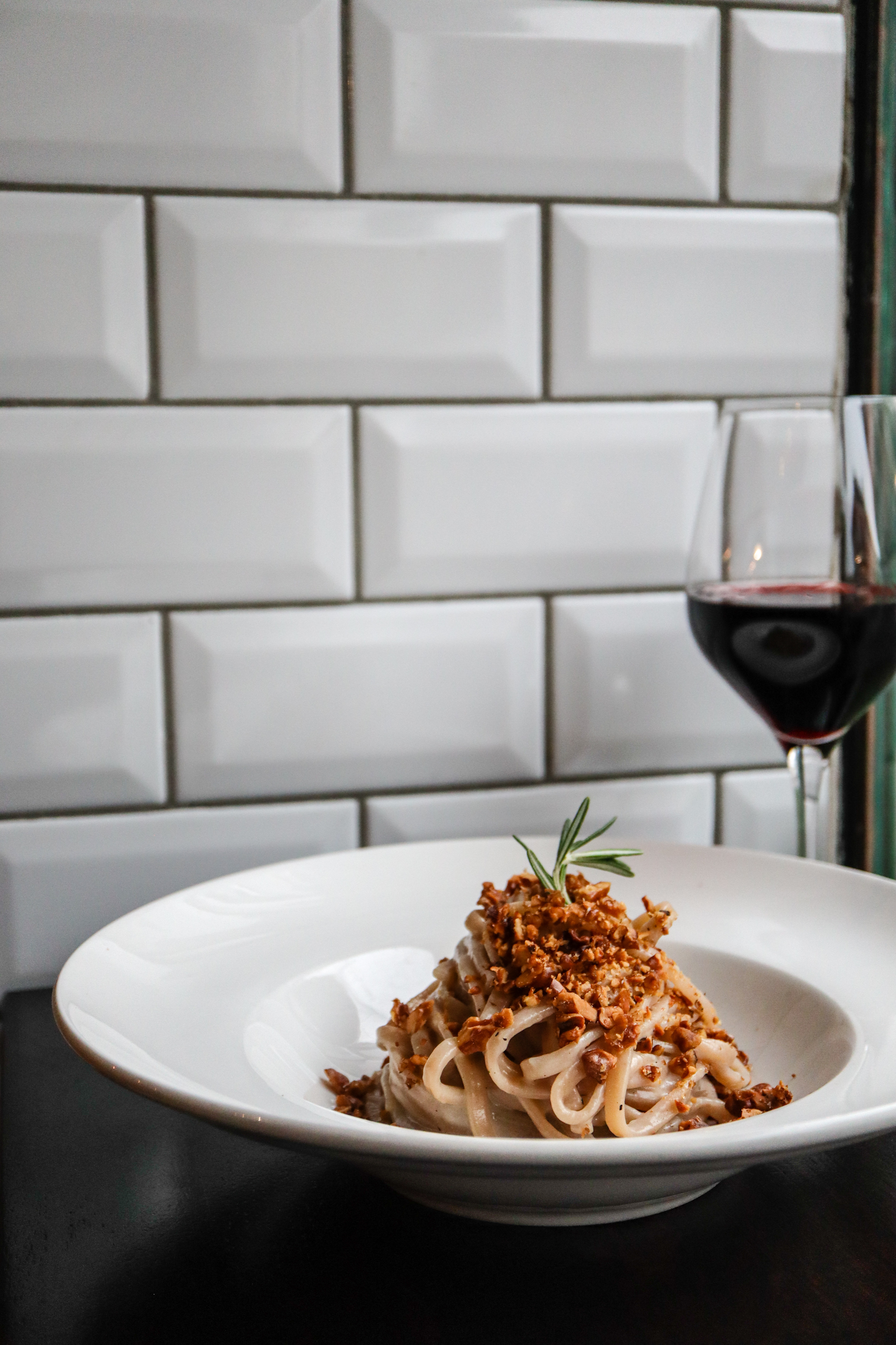 None of their cocktails are ordinary. Their drinks list is very creative with some unusual techniques that make the cocktails extra special, such as infusing them with liquid smoke for example. The cherry Negroni is served in a little porcelain cup. You drink it with a dried pear on the side, as well as a small teaspoon with a blop of rich, melted chocolate, with a cherry marinated in syrup on top – it’s their version of Mon Chéri. The cocktail is made from Laphroaig 10 Whisky, Martini Rubino, Martini Bitter, Italicus Rosolio and Amarena Fabbri syrup. With each drink you order you get a small snack, such as Taralli (an Italian kind of cracker).