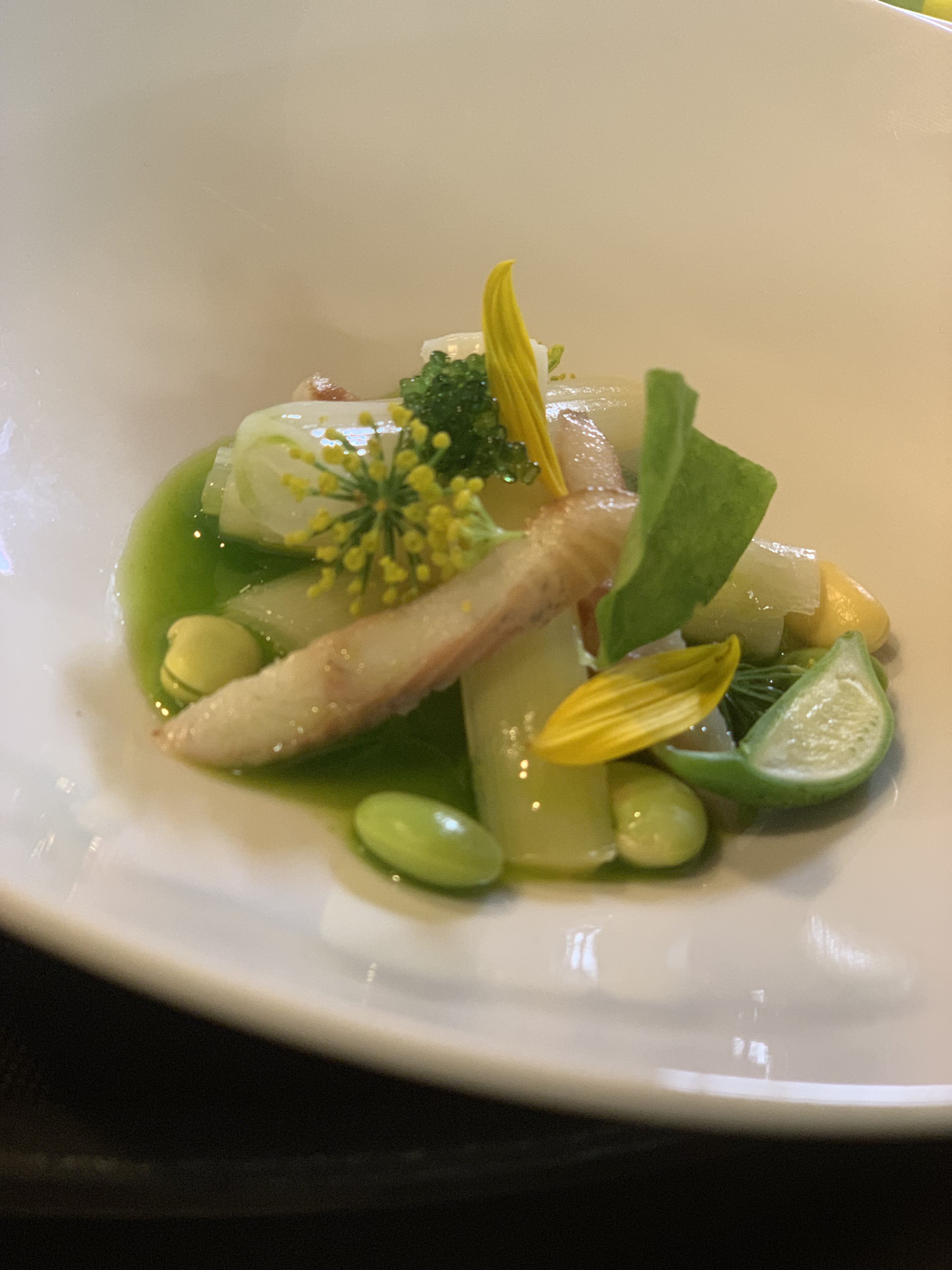 He opted for the tasting menu – a slight risk, perhaps – for the simple reason that, this way, he finds it easier to deal with ingredients going into the food. It also guarantees that everything that appears on the plate or bowl is absolutely fresh (nothing is stored for days on end in a fridge at this place).