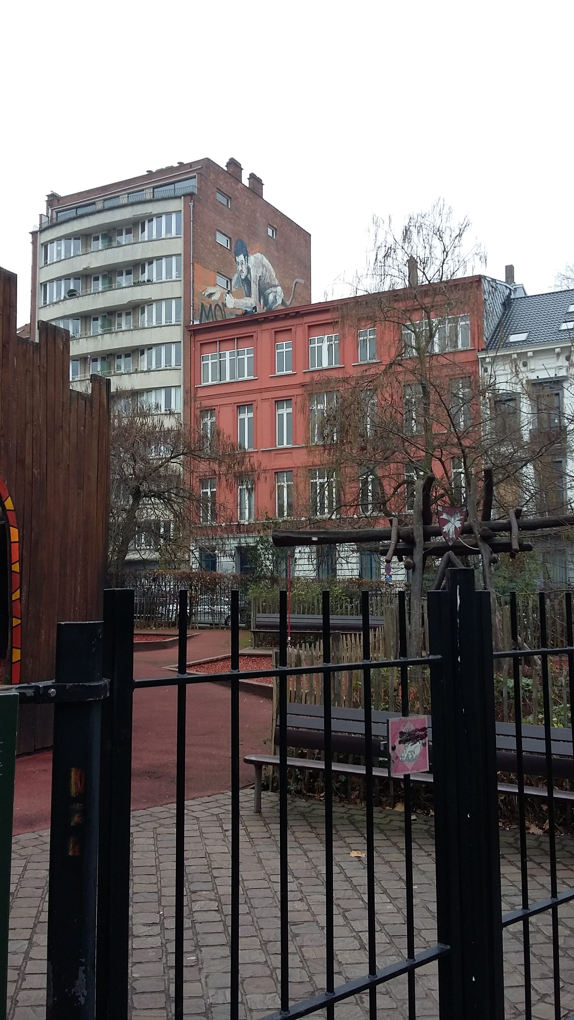 Now, street art comes and goes, but Zizi might be another story. Have you met Zizi, from Saint Gilles? He is a big popular wiener and personality with his own Facebook page. Zizi survived a political debate in the municipality about his possible removal. You can meet him in real life at the tram stop Bareel – at the side of cafe Las Vegas. He will be happy to see you.