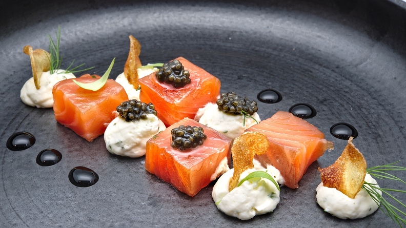 Worth bearing in mind that there’s no a la carte but, rather, a selection of equally-wonderful five fixed menus, each with carefully chosen and matched delicious wines, mostly French and Italian. The contents of each can vary but might include starters oyster-flavoured swordfish from Australia, served with a lemon cream from Japan and caviar. A second starter might be sea bream served in a white wine with courgette and an aubergine platter.